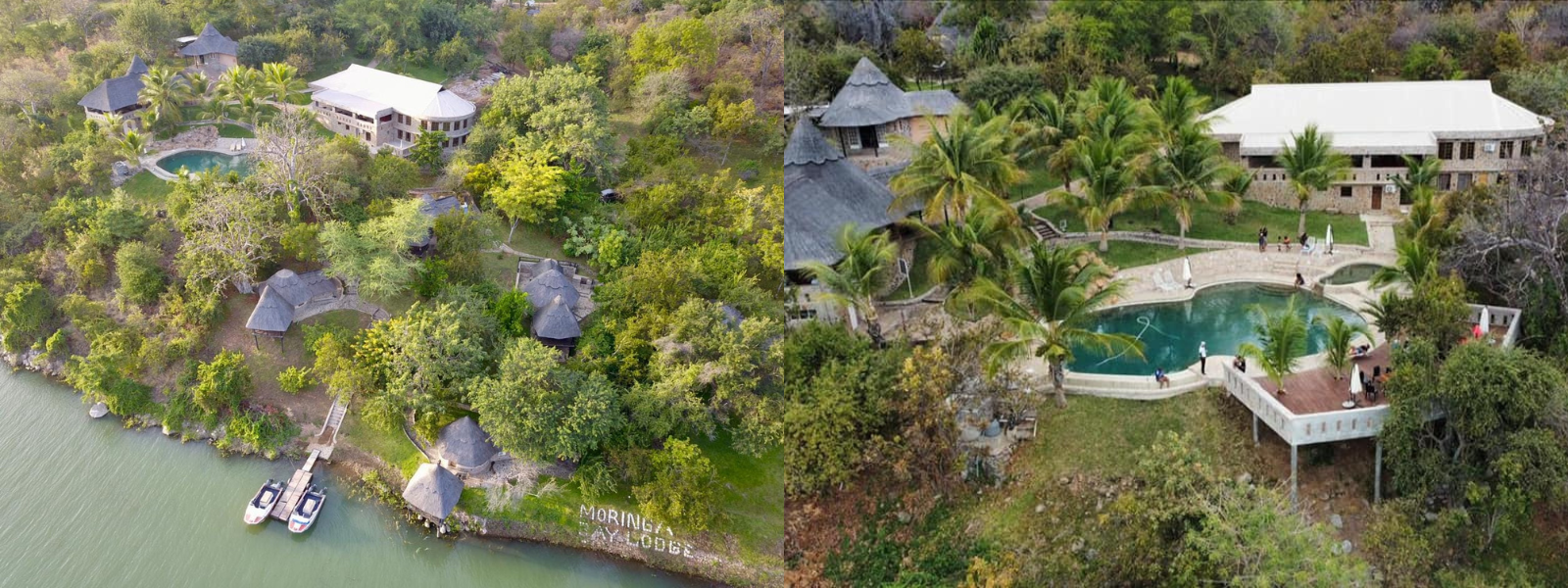 Moringa Bay Lodge, situated on the serene shores of Lake Cahora Bassa in North-West Mozambique, is a family-operated establishment. It features six air-conditioned self-catering chalets, six air-conditioned non-self-catering chalets, and eight air-conditioned non-self-catering rooms. Nestled within meticulously maintained lawns, the lodge offers picturesque surroundings. The Bar, Restaurant and horizon swimming pool overlook the stunning lake.